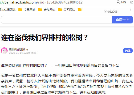 我是一名钦州市钦北区大直镇王岗村委会界排村普通村民,今天要为家乡的父老乡亲发声,揭露一桩令人愤慨的山地林纠纷。我们祖祖辈辈耕种管理的山岭,竟在光天化日之下被强行采伐,而相关部门却以“合法手续”为名袖手旁观!这件事不仅关乎我们的生计,更暴露出基层治理中的漏洞与不公。请听我细细道来。
