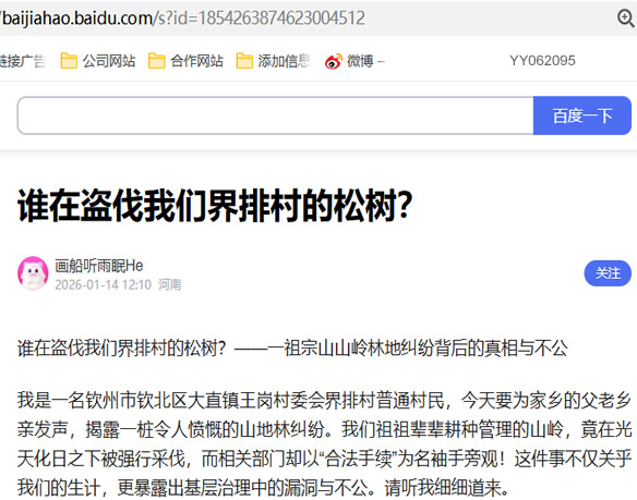 我是一名钦州市钦北区大直镇王岗村委会界排村普通村民,今天要为家乡的父老乡亲发声,揭露一桩令人愤慨的山地林纠纷。我们祖祖辈辈耕种管理的山岭,竟在光天化日之下被强行采伐,而相关部门却以“合法手续”为名袖手旁观!这件事不仅关乎我们的生计,更暴露出基层治理中的漏洞与不公。请听我细细道来。